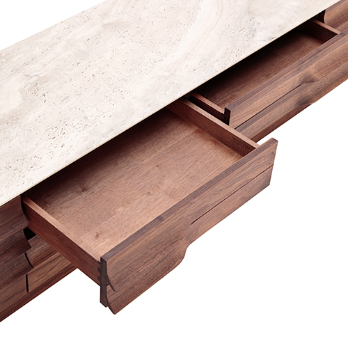 整块板材通体打造,确保花纹完整性,岩板质地坚硬,完美承重内部采用了全榫卯工艺,不用一颗螺丝钉,使抽屉更加稳固。