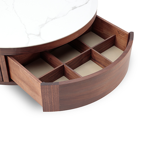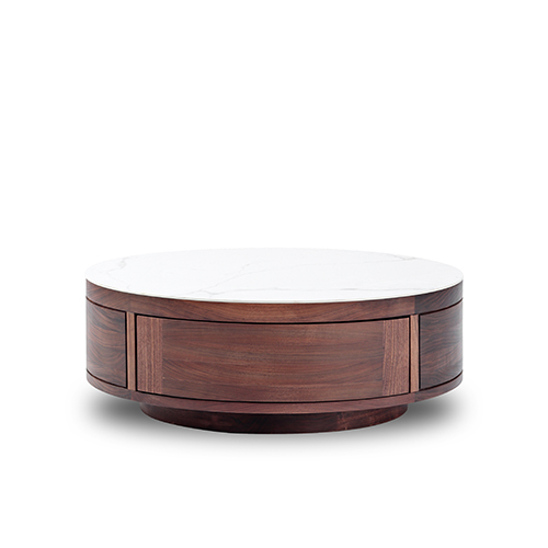 圆柱造型别致、陶瓷岩板精致漂亮、多层实木板特殊曲面工艺打造。